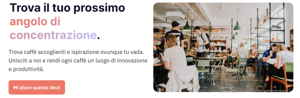 Ecco perché ho pensato a NomadCafé: per fornire una soluzione che ti aiuti a scoprire i bar e locali ideali per il lavoro da remoto! ☕️